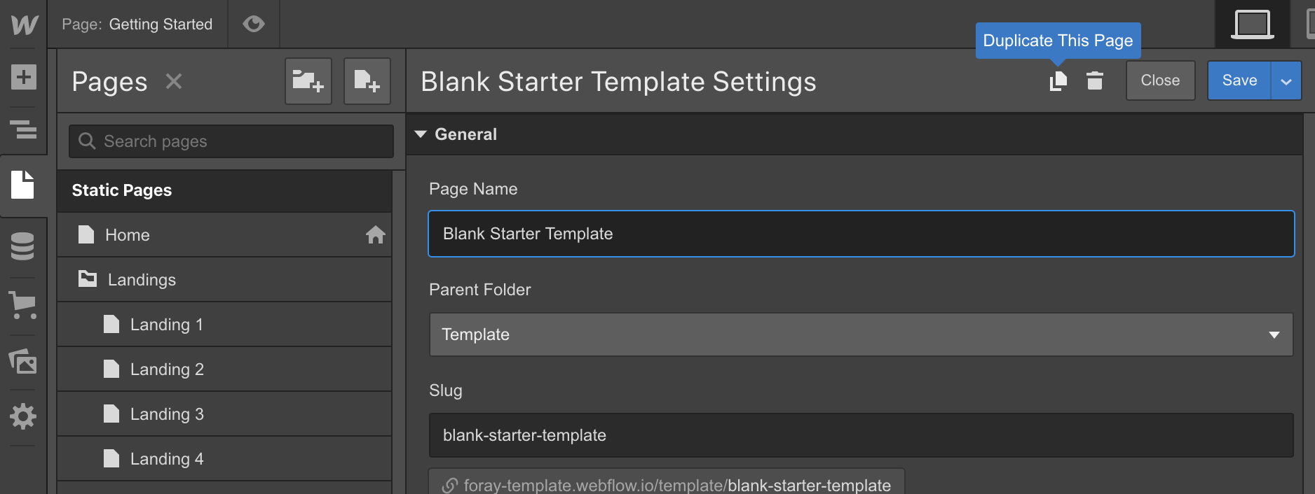 1. Duplicate the Blank Starter Page template